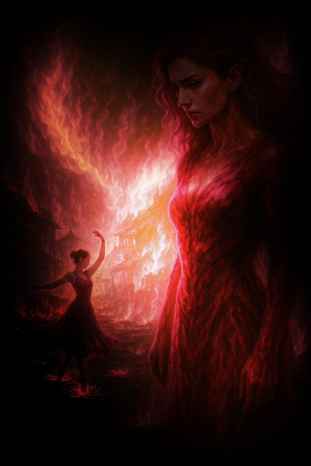 空間が赤く染まり、炎の揺らぎが彼女の視界を包んでいく。